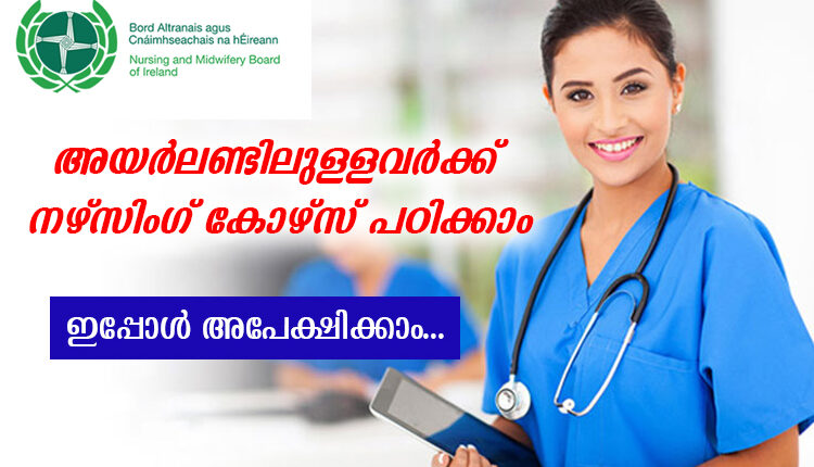 ഡബ്ലിന് : അയര്ലണ്ടില് നഴ്സിംഗ് ആന്ഡ് മിഡൈ്വഫറി ബോര്ഡ് ഓഫ് അയര്ലണ്ടിന്റെ (എന്എംബിഐ) സഹകരണത്തോടെയുള്ള നഴ്സിംഗ് കോഴ്സുകള് ആരംഭിക്കുന്നു. താല്പ്പര്യമുള്ളവര്ക്ക് ഇപ്പോള് അപേക്ഷിക്കാം. 2022 ജനുവരി ഒന്നിന് 23 വയസ്സിന് മുകളില് പ്രായമുള്ളവര്ക്കാണ് അപേക്ഷിക്കാനാവുക.