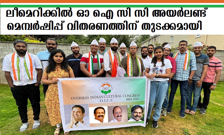 ലീമെറിക്ക് : ഓ.ഐ.സി.സി ലീമെറിക്ക് യൂണിറ്റിന്റെ മെമ്പര്‍ഷിപ്പ് വിതരണോദ്ഘാടനം കേരളത്തിന്റെ പ്രതിപക്ഷ നേതാവ് വി ഡി സതീശന്‍ ഓണ്‍ലൈനില്‍ പങ്കെടുത്ത ചടങ്ങില്‍ വെച്ച് നിര്‍വഹിക്കപ്പെട്ടു. ചടങ്ങില്‍ ഓ.ഐ.സി.സി അയര്‍ലണ്ട് പ്രസിഡണ്ട് എം എ ലിങ്ക്വിന്‍സ്റ്റാര്‍ അദ്ധ്യക്ഷനായിരുന്നു.