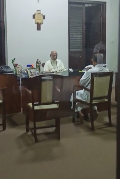 ഫോട്ടോ :എറണാകുളം അതിരൂപതാ ആസ്ഥാനത്തെത്തിയ കര്ദിനാള് മാര് ജോര്ജ് ആലഞ്ചേരിക്ക് മുമ്പില് വിശദീകരണവുമായി ബിഷപ്പ് കരിയില്