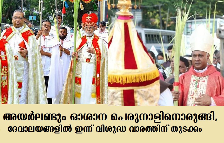 2022 ഏപ്രില് 10 ഞായറാഴ്ച ഓശാന തിരുകര്മ്മങ്ങള് അയര്ലണ്ടിലെ എല്ലാ കുര്ബാന സെന്ററുകളിലും നടത്തപ്പെടും. വിശുദ്ധ കുര്ബനയും, കുരുത്തോല വെഞ്ചരിപ്പും പ്രദക്ഷിണവും ഉണ്ടായിരിക്കും.