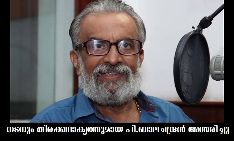 വൈക്കം: നടനും തിരക്കഥാകൃത്തുമായ പി.ബാലചന്ദ്രന് അന്തരിച്ചു. കഴിഞ്ഞ കുറച്ചുനാളുകളായി രോഗബാധിതനായി ചികിത്സയിലായിരുന്നു അദ്ദേഹം. പുലര്ച്ചെ അഞ്ച് മണിയോടെ വൈക്കത്തെ അദ്ദേഹത്തിന്റെ വീട്ടില് വെച്ചായിരുന്നു അന്ത്യം. സംസ്കാരം വൈകീട്ട് മൂന്നുമണിക്ക് വൈക്കത്ത് നടക്കും.