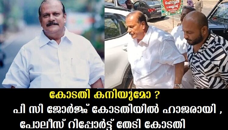 ഈരാറ്റുപേട്ട : ചാനല് ചര്ച്ചയിലെ മതവിദ്വേഷ പരമാര്ശമെന്ന പേരിലുള്ള വിവാദത്തെ തുടര്ന്ന് കോടതിയില് കീഴടങ്ങിയ ബി ജെപി നേതാവ് പി സി ജോര്ജിന്റെ കേസ് ഇന്ന് ഉച്ചകഴിഞ്ഞ് രണ്ട് മണിക്ക് പരിഗണയ്ക്കാനായി മാറ്റിവെച്ചു. രാവിലെ 10 മണിയോടെ കോടതിയില് ഹാജരായിട്ടും,പോലീസ് പി സിയെ കസ്റ്റഡിയില് വേണമെന്നുള്ള അപേക്ഷ പോലും നല്കിയിരുന്നില്ല.കേസിന്റെ റിപ്പോര്ട്ടും ഹാജരാക്കിയില്ല.