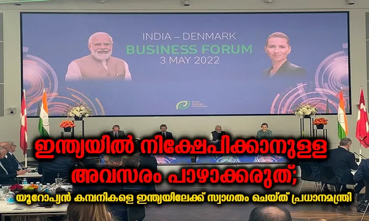 ഇന്ത്യയിലെ നിക്ഷേപത്തിന്റെ ലക്ഷ്യ സാദ്ധ്യതകള് ഉയര്ത്തിക്കാട്ടിയാണ് പ്രധാനമന്ത്രി ഡെന്മാര്ക്കില് സംസാരിച്ചത്.