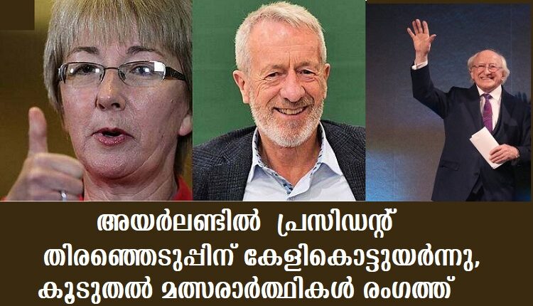 ഡബ്ലിന് :പ്രസിഡണ്ട് തിരഞ്ഞെടുപ്പിന് കേളികൊട്ടുയര്ന്നതോടെ വിവിധ മത്സരാര്ത്ഥികളും രംഗത്തുവന്നു തുടങ്ങി.നവംബര് 11 ചൊവ്വാഴ്ച വരെയാണ് നാമനിര്ദ്ദേശത്തിന് സമയമുള്ളത്.