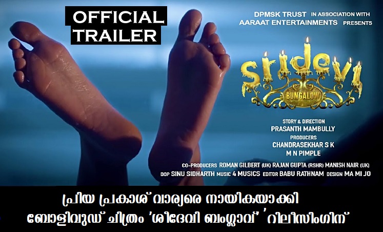 കൊച്ചി :മലയാളി താരം പ്രിയ പ്രകാശ് വാര്യരെ നായികയാക്കി മലയാളിയായ പ്രശാന്ത് മാമ്പുള്ളി സംവിധാനം ചെയ്യുന്ന ബോളിവുഡ് ചിത്രമായ ‘ശ്രീദേവി ബംഗ്ലാവി’ ന്റെ മൂന്നാം ട്രെയ്ലര്‍ മോഹന്‍ലാല്‍ തന്റെ ഫേസ് ബുക്കിലൂടെ റിലീസ് ചെയ്തു.ഒരു ‘അഡാര്‍ ലൗ’ എന്ന ചിത്രത്തിലൂടെ ശ്രദ്ധേയയായ പ്രിയ പ്രകാശ് വാര്യരുടെ ആദ്യ ബോളിവുഡ് ചിത്രമാണ് ‘ശ്രീദേവി ബംഗ്ലാവ്’ . ചിത്രം ഉടന്‍ റീലിസ് ചെയ്യുമെന്നാണ് അണിയറ പ്രവര്‍ത്തകര്‍ പറയുന്നത്.