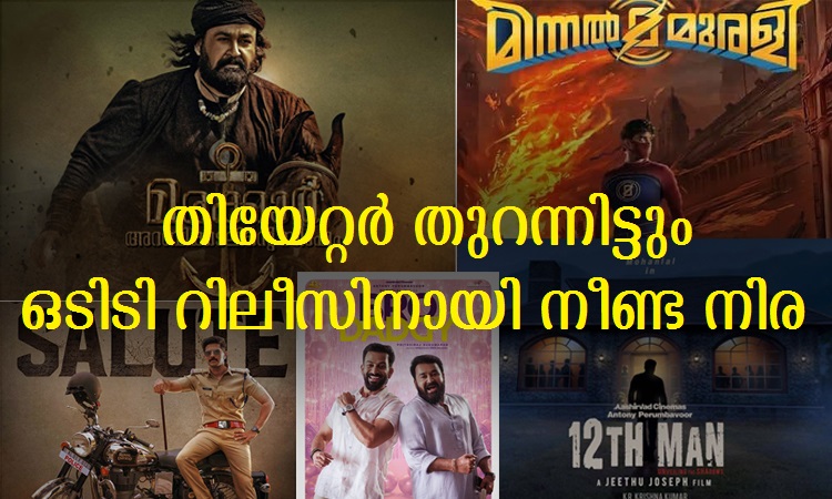 ദിലീപ്, ദുല്ഖര്, നിവിന് പോളി, ടോവീനോ ചിത്രങ്ങളും ഒടിടിയില് ഉടന് റിലീസ് ചെയ്യും. പൃഥ്വിരാജ് സംവിധാനം ചെയ്യുന്ന ‘ബ്രോ ഡാഡി’, ജിത്തു ജോസഫിന്റെ ‘ട്വല്ത്ത് മാന്’, ഷാജി കൈലാസിന്റെ ‘എലോണ്’, പുലിമുരുകനുശേഷം വൈശാഖ് സംവിധാനം ചെയ്യുന്ന പേരിടാത്ത ചിത്രം എന്നിവയാണ് മോഹന്ലാല് നായകനായി ഒടിടി റിലീസിനൊരുങ്ങുന്നത്.