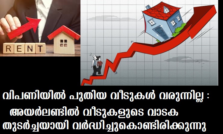 വിപണിയില് പുതിയ വീടുകള് വരുന്നില്ല : അയര്ലണ്ടില് വീടുകളുടെ വാടക തുടര്ച്ചയായി വര്ദ്ധിച്ചുകൊണ്ടിരിക്കുന്നു