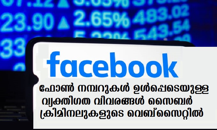 ഫേയ്സ്ബുക്ക് ഉപയോക്താക്കളുടെ ഫോണ് നമ്പറുകള് ഉള്പ്പെടെയുള്ള വ്യക്തിഗത വിവരങ്ങള് സൈബര് ക്രിമിനലുകളുടെ വെബ്സൈറ്റില്