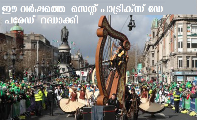 ഡബ്ലിന്‍ : കോവിഡ് വ്യാപനത്തിന്റെ പശ്ചാത്തലത്തില്‍ ഇത്തവണ സെന്റ് പാട്രിക്സ്   ഡേ പരേഡ് ഉണ്ടായിരിക്കില്ലെന്ന് പ്രധാനമന്ത്രി മീഹോള്‍ മാര്‍ട്ടിന്‍. രാജ്യത്തെ പൊതുജനാരോഗ്യ പ്രതിസന്ധിയുടെ പശ്ചാത്തലത്തില്‍ രാജ്യത്തുടനീളമുള്ള പ്രധാന പരേഡുകള്‍ കഴിഞ്ഞ മാര്‍ച്ചുമുതല്‍ റദ്ദാക്കിയതിന്റെ തുടര്‍ച്ചയായാണ് തീരുമാനം. മാര്‍ച്ച് 17നാണ് സെന്റ് പാട്രിക്സ് ഡേ.