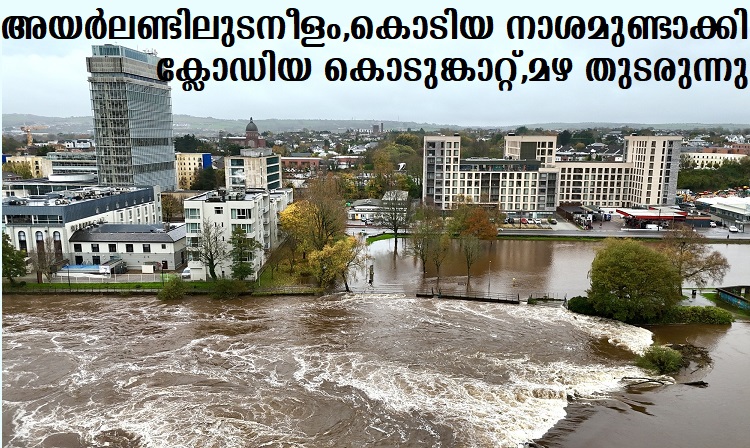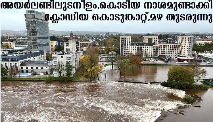 അയര്ലണ്ടിലുടനീളം , കൊടിയ നാശമുണ്ടാക്കി ക്ലോഡിയ കൊടുങ്കാറ്റ് …മഴ തുടരുന്നു
