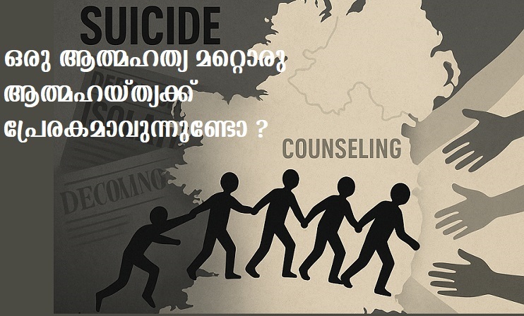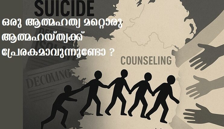 ഒരു ആത്മഹത്യ മറ്റൊരു ആത്മഹത്യക്ക് പ്രേരകമാവുന്നുണ്ടോ ? അതെ, ആത്മഹത്യ ഒരു ‘സോഷ്യല് കണ്ടേജന്’ (social contagion) രീതിയില് മറ്റൊരു ആത്മഹത്യയ്ക്ക് പ്രേരകമായി പ്രവര്ത്തിക്കാമെന്നു ഗവേഷണങ്ങള് കാണിക്കുന്നു.18-ാം നൂറ്റാണ്ടില് ഗോതെയുടെ The Sorrows of Young Werther എന്ന നോവലില് വന്ന ആത്മഹത്യാ വിവരണത്തിന് പിന്നാലെ യൂറോപ്പില് ചില യുവാക്കള് ആത്മഹത്യ ചെയ്തത് ചരിത്ര രേഖകളില് കാണുന്നുണ്ട്. പ്രത്യേകിച്ച് പ്രശസ്ത വ്യക്തികളുടെ (സെലിബ്രിറ്റികളുടെ) ആത്മഹത്യകള്ക്ക് പിന്നാലെ പൊതുജനങ്ങളില് ആത്മഹത്യാ നിരക്ക് വര്ദ്ധിക്കുന്നതായി പല രാജ്യങ്ങളിലെ പഠനങ്ങളില് കണ്ടെത്തിയിട്ടുണ്ട്.