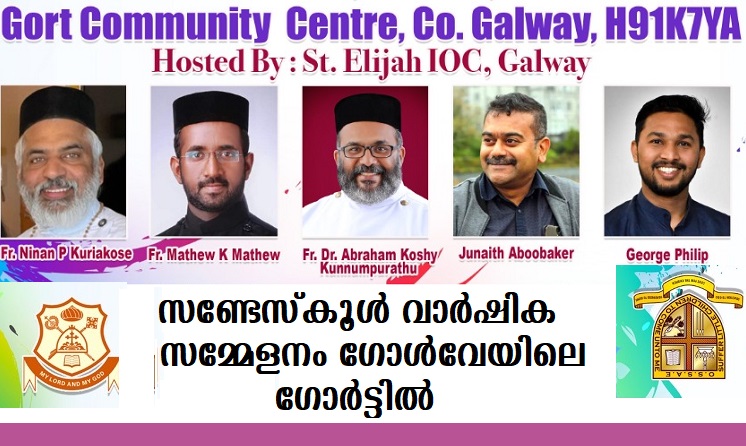 ഗോള്‍വേ: ഇന്ത്യന്‍ ഓര്‍ത്തഡോക്‌സ് സഭയുടെ സണ്ടേസ്‌കൂള്‍ പ്രസ്ഥാനത്തിന്റെ യൂ .കെ യൂറോപ്പ് ആഫ്രിക്ക ഭദ്രാസനത്തിലെ സോണ്‍ 4 അയര്‍ലണ്ടിലെ സണ്ടേസ്‌കൂള്‍ കുട്ടികളുടെയും അദ്ധ്യപകരുടെയും വാര്‍ഷിക സമ്മേളനം 2022 ഒക്‌റ്റോബര്‍ 29, ശനിയാഴ്ച്ച പത്തു മണി മുതല്‍ ഗോള്‍വേ ഗോര്‍ട്ട് കമ്മ്യൂണിറ്റി സെന്ററില്‍ നടത്തപ്പെടും.