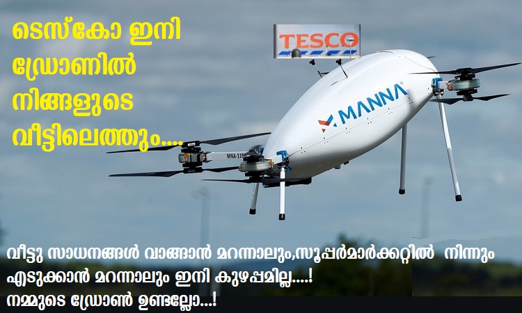 ടെസ്കോ ഇനി ഡ്രോണില് നിങ്ങളുടെ വീട്ടിലെത്തും വീട്ടു സാധനങ്ങള് വാങ്ങാന് മറന്നാലും,സൂപ്പര്മാര്ക്കറ്റില് നിന്നും എടുക്കാന് മറന്നാലും ഇനി കുഴപ്പമില്ല…. നമ്മുടെ ഡ്രോണ് ഉണ്ടല്ലോ…