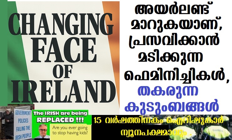 അയര്ലണ്ടിലെ തദ്ദേശീയരുടെ വീടുകളില് കുട്ടികള് കുറയുന്നു.ഫെര്ട്ടിലിറ്റി നിരക്കുകള് കുറയുന്നു.ഇന്ത്യക്കാരടക്കമുള്ള വിദേശികളുടെ എണ്ണം പെരുകുന്നു.കുടിയേറ്റത്തിനെതിരെ പലവിധ പ്രചരണങ്ങളും പ്രതിഷേധവുമുയരുന്നു.സ്കൂളുകള് കുട്ടികളുടെ വൈവിധ്യം കൊണ്ട് നിറയുന്നു… തുടങ്ങി ഒട്ടേറെ മാറ്റങ്ങളാണ് അയര്ലണ്ടില് നടക്കുന്നത്.ഇവയെല്ലാം അക്ഷരാര്ത്ഥത്തില് ശരിയാണെന്ന് വിദഗ്ദ്ധര് അഭിപ്രായപ്പെടുന്നു.