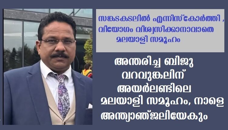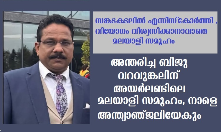 നാളെ ശനിയാഴ്ച) ഉച്ചയ്ക്ക് 2 മുതല് വൈകുന്നേരം 7 വരെ എനിസ്കോര്ത്തി ബ്രൗണ്സ് ഫ്യൂണറല് ഹോമില് ((Y21H3K5) ബിജുവിന്റെ ഭൗതീകദേഹം പൊതുദര്ശനത്തിന് വെയ്ക്കും.