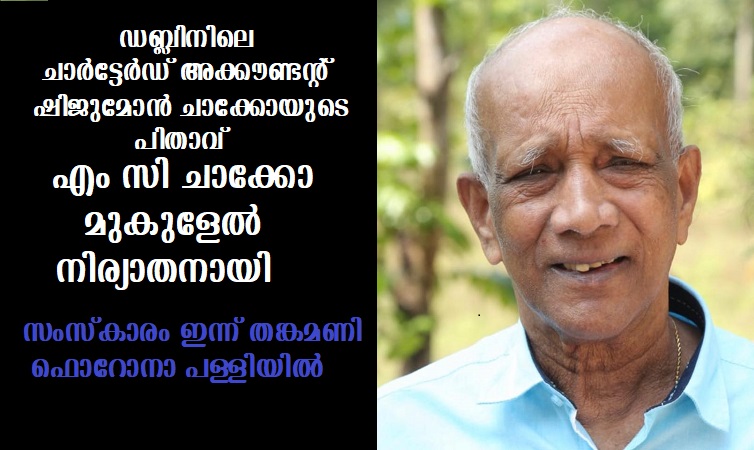 ഡബ്ലിനിലെ ചാര്ട്ടേര്ഡ് അക്കൗണ്ടന്റ് ഷിജുമോന് ചാക്കോയുടെ പിതാവ് ഇടുക്കി തങ്കമണി മുകുളേല് എം സി ചാക്കോ നിര്യാതനായി
