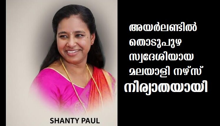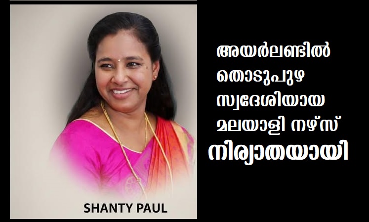 രണ്ട് വര്ഷത്തോളമായി കാന്സര് ബാധിതായി ചികിത്സയില് ആയിരുന്ന ഷാന്റി പോള് ലോംഗ് ഫോര്ഡിലെ മിഡ്ലാൻസ് ഇന്റലക്ച്വൽ ഡിസെബിലിറ്റി സെന്ററിൽ സ്റ്റാഫ് നഴ്സായി സേവനം അനുഷ്ഠിക്കുകയായിരുന്നു. ഇന്ന് രാവിലെ 3 മണിയോടെ മുള്ളിംഗാർ ഹോസ്പിറ്റലിൽ വെച്ചായിരുന്നു പരേതയുടെ നിര്യാണം.പരേത അങ്കമാലി മൂക്കന്നൂർ അട്ടാറ മാളിയേക്കൽ കുടുംബാംഗമാണ്.