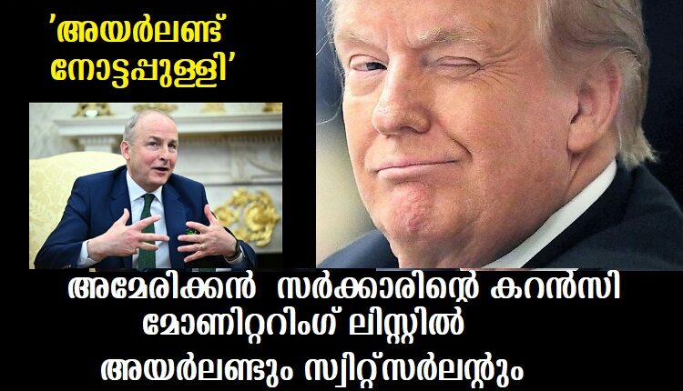 ‘അയര്‍ലണ്ട് നോട്ടപ്പുള്ളി’:അമേരിക്കന്‍ സര്‍ക്കാരിന്റെ കറന്‍സി മോണിറ്ററിംഗ് ലിസ്റ്റില്‍ അയര്‍ലണ്ടും സ്വിറ്റ്സര്‍ലന്റും