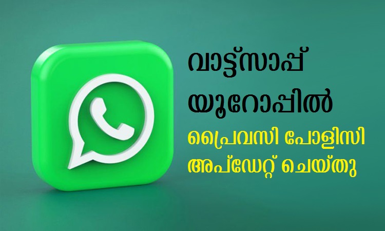 ഡബ്ലിന് : വാട്ട്സാപ്പ് യൂറോപ്പില് പ്രൈവസി പോളിസി അപ്ഡേറ്റ് ചെയ്തു. സ്വകാര്യത സംബന്ധിച്ച ഡാറ്റാ പ്രൊട്ടക്ഷന് നിയമങ്ങള് ലംഘിച്ചുവെന്ന അയര്ലണ്ടിലെ ഡാറ്റാ പ്രൊട്ടക്ഷന് കമ്മീഷന്റെ (ഡിപിസി) കണ്ടെത്തലുകളെ തുടര്ന്നാണ് ഈ നടപടി. പുതിയ സ്വകാര്യതാ നയം ഇന്നലെ മുതല് പ്രാബല്യത്തില് വന്നതായി വാട്സാപ്പ് അറിയിച്ചു.