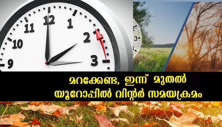 ഡബ്ലിന്: ഒക്ടോബര് 26 ഞായറാഴ്ച 02:00 മണിയ്ക്ക് അയര്ലണ്ടിലെയും യൂറോപ്പിലെയും സമയം വിന്റര് ക്രമത്തിലേയ്ക്ക് മാറുകയാണ്.